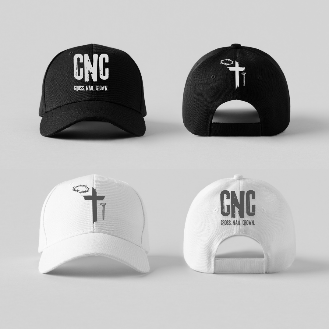 "C.N.C." branding on the front of the cap with the graphic representation printed on the back.